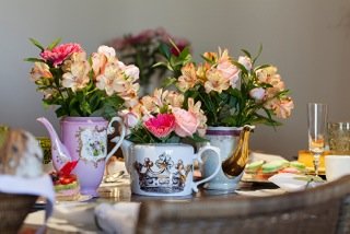 Um dia percebi que tinha uns 4 ou 5 bules antigos da minha família e resolvi que esses objetos tão lindos iriam formar um belo conjunto.