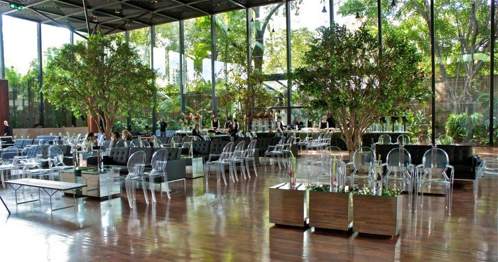 O espaço da Casa Fasano é lindo integrando a natureza à arquitetura, parece que não foi por acaso a escolha, já que o projeto do shopping tem o conceito de incorporar o verde e a luz natural.