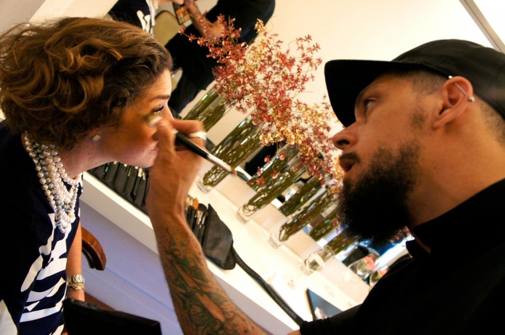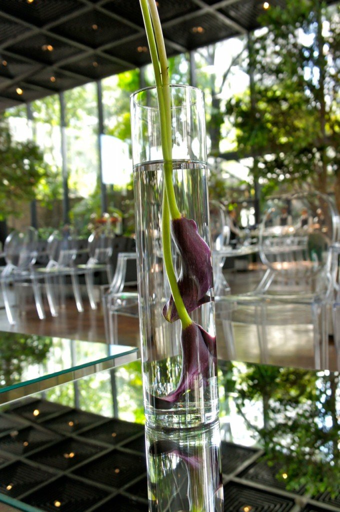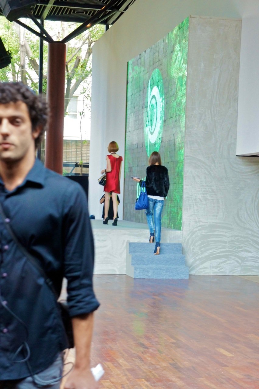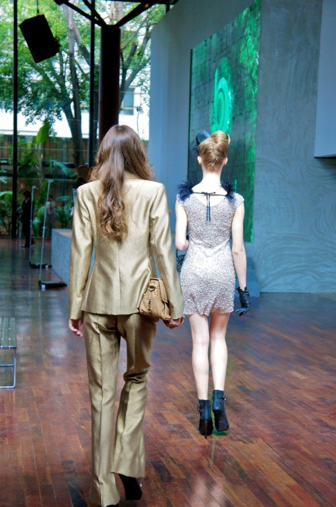 Bárbaro o detalhe da mesa ladeada e os arranjos verticais inusitados, a transparência das cadeiras contrapondo o piso de madeira, o pé direito alto com o vidro no fechamento abraçando a vegetação do páteo externo, o mimo dos arranjos e a maquiagem chanel no camarim, o mix dos sapatos da 1.fila e suas preciosas pérolas.