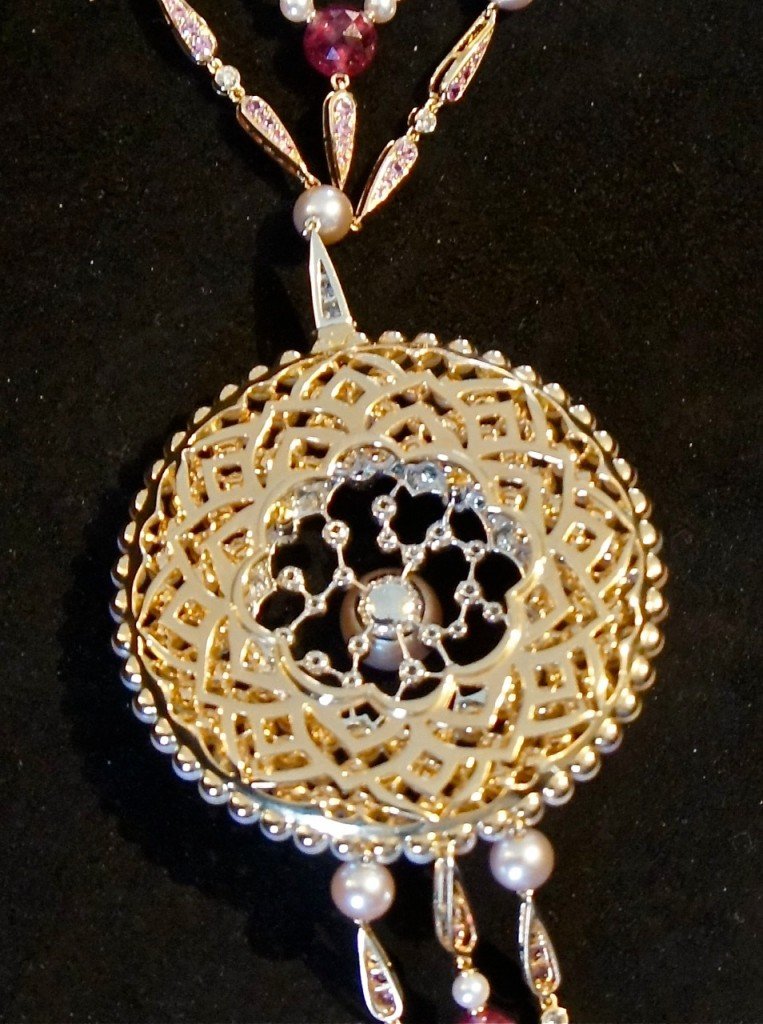 Peças em cabochon lembram decorações Venezianas com influência do médio oriente.