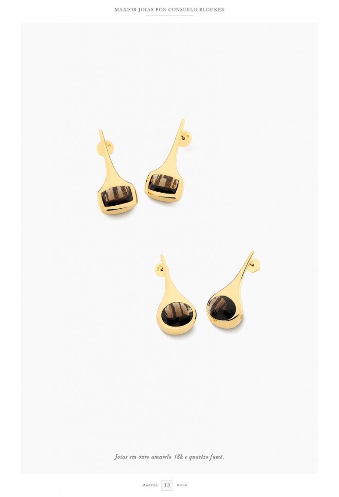 A primeira é a Bold. Todas peças lineares, elegantes e de grande personalidade. Elas são uma delícia de carregar. Super bem acabadas e pesadas, você sente que abraçam teu braço ou dedo. Os brincos são feitos para não puxar na orelha e ficar retinhos! E como tudo nessa coleção, sempre procuramos sair do óbvio. O quartzo fumè, que caracteriza a coleção, é em degradê. Vai do mais claro ao mais escuro! E tem mais, como me explicou o designer responsável pela coleção, Rodrigo Robson: “Outro diferencial é a lapidação. Foi projetada com encaixes para que a pedra ficasse na mesma altura do ouro, uma única superfície. Isso na lapidação é um processo super difícil, pois cada pedra teve que ser esculpida, não somente lapidada.” Incrível, não?!!! Essa Maxior!!