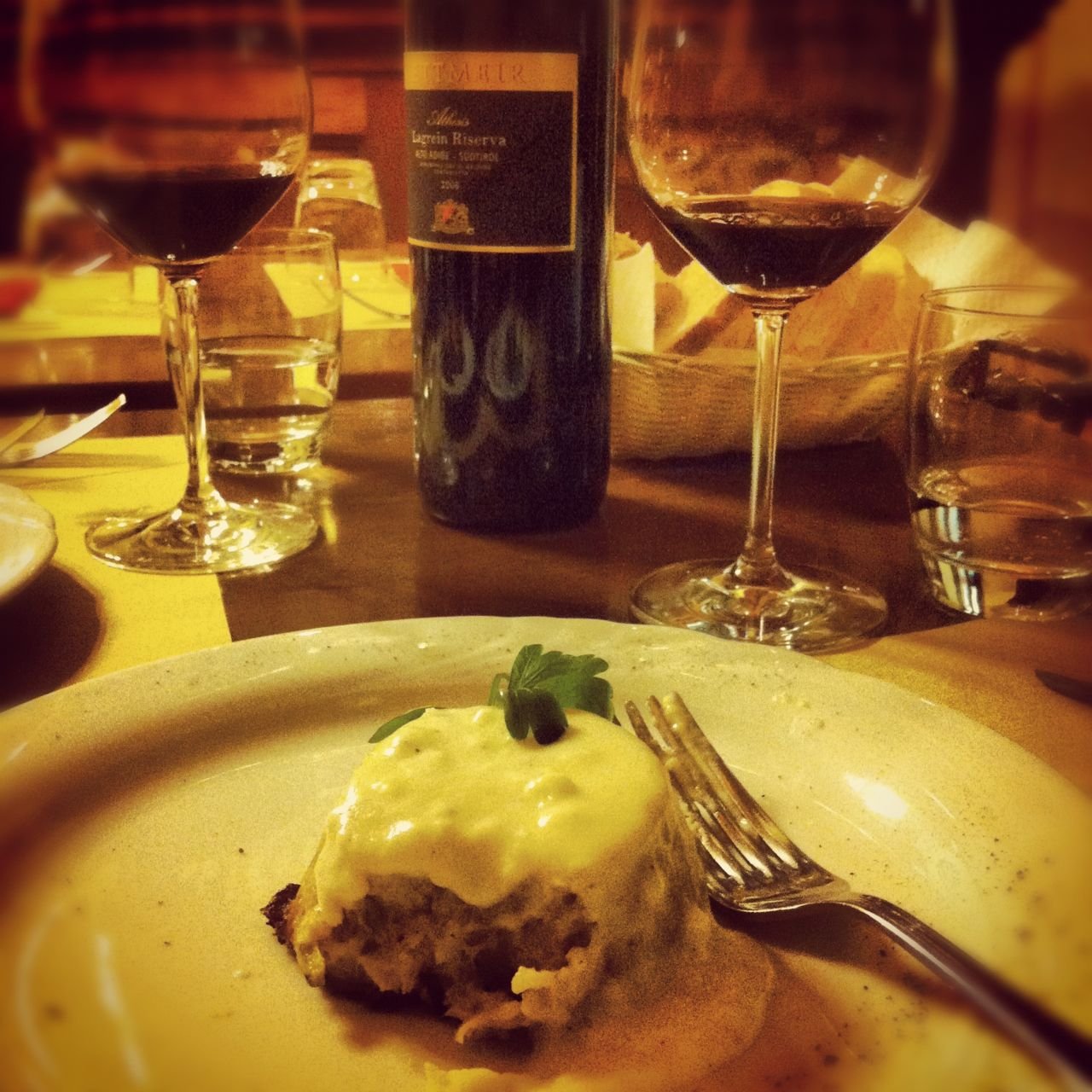 Vinho absolutamente delicioso! Apesar de estarmos na zona de Chianti, eu não sou uma amante da uva daqui, a San Giovese. Então escolhemos este do norte da Itália, Alto Adige, com uvas lagrein. Preço deste vinho 25 Euros.