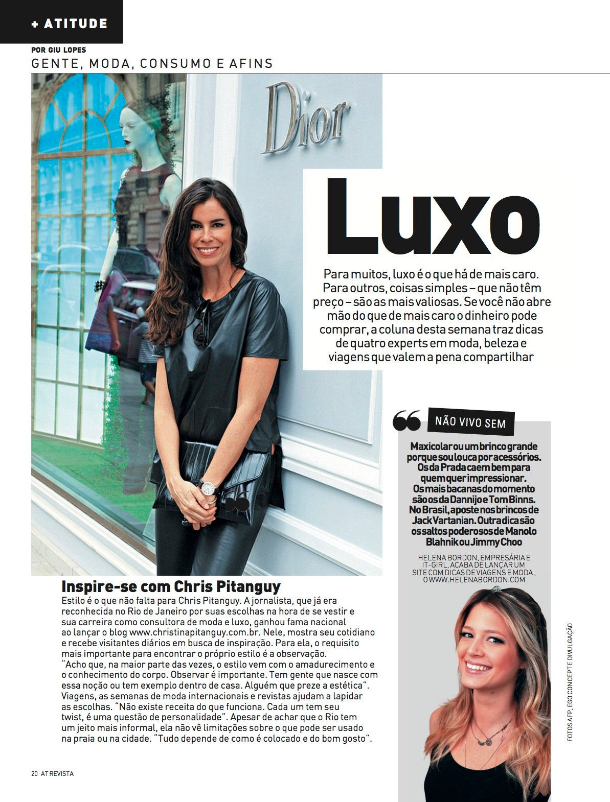 14 de October de 2012Fiquei muito honrada com sua participação na minha coluna. Acho você a epítome da elegância, acompanho seu blog...então a escolha foi uma coisa meio de fã mesmo!!! Beijos