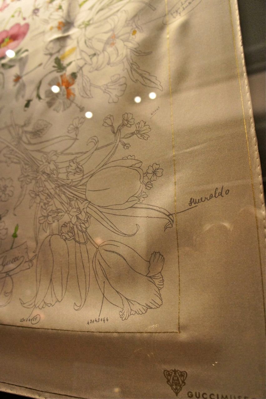 No piso inferior, além de um café e livraria comissariada pela Rizzoli, existe uma fantástica mini-loja Ícone com peças feitas exclusivamente para o museu. Emblemático é o lindo lenço do esboço original do Flora com as notas técnicas.