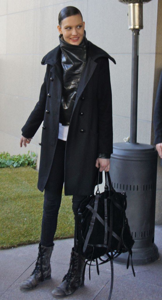A bolsa preta com as tachinhas na parte de baixo é do Alexander Wang!!! Tenho uma e adoro!!! Só acho um pouco pesada, então tem que ser econômica e racional para escolher o que vai levar dentro dela, caso contrário o peso sobrecarrega braços, ombros, costas... Bj