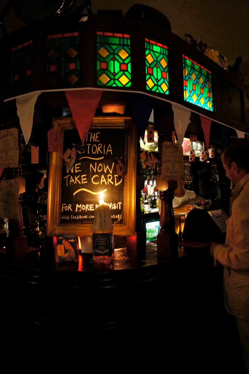 Ontém, a estória foi outra. Um pouco menos bem sucedida a pesquisa, após 30 minutos de metrô e 6 quarteirões de caminhada em um bairro “seedy” (tradução: meio decadente), chegamos ao The Victoria. Um Pub com “open mic” night. O que significa que qualquer pessoa que quisesse cantar, bastava aparecer e reservar os seus 10 minutos na frente do microfone aberto.