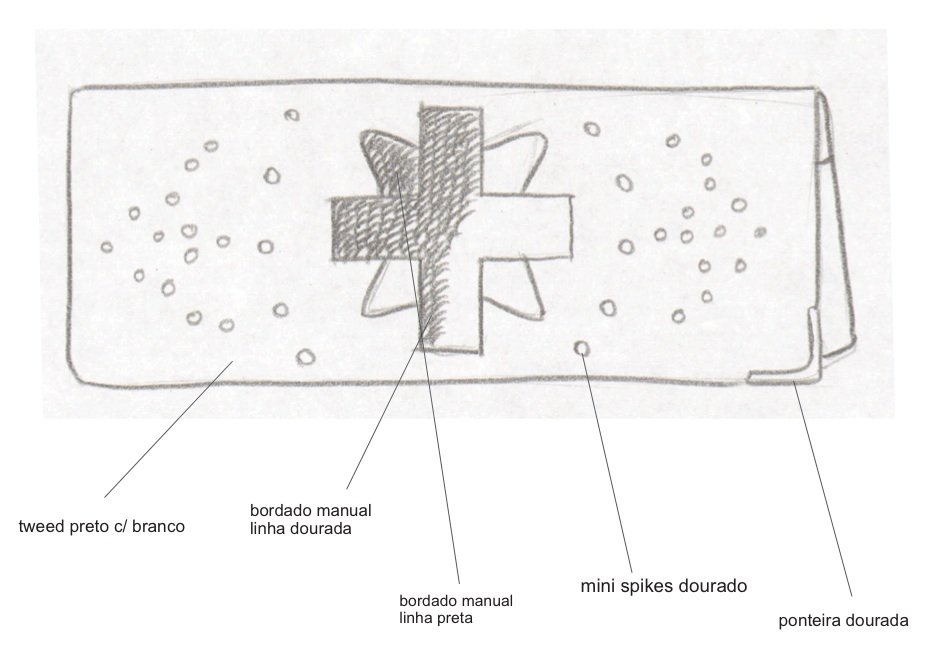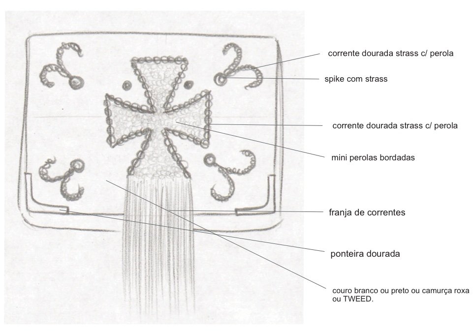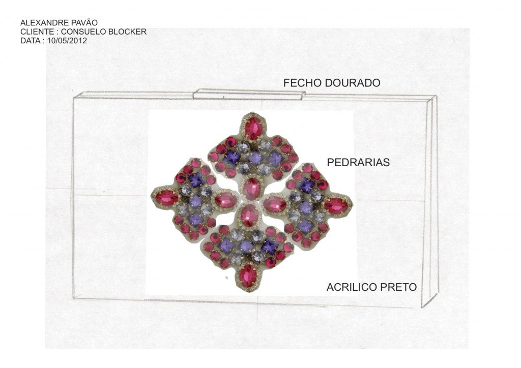O Alexandre tem só 22 anos. Ele me contatou e disse que queria desenhar uma bolsa comigo. Vi o seu produto e gostei. Topei! Depois de conversarmos um pouco por email, disse que gostava muito da cruz de Malta que o Verdura usou tanto nas jóias da Chanel no início de 1900. Ele entendeu direitinho e me mandou estes desenhos.