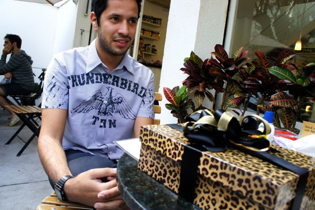 Escolhi a primeira! Concordamos nos detalhes e ele veio este fim de semana trazer a bolsa!! Um amor, pois veio de Franca, onde tem a produção, para me conhecer e trazer o presente!! Olhem só como foi o encontro!