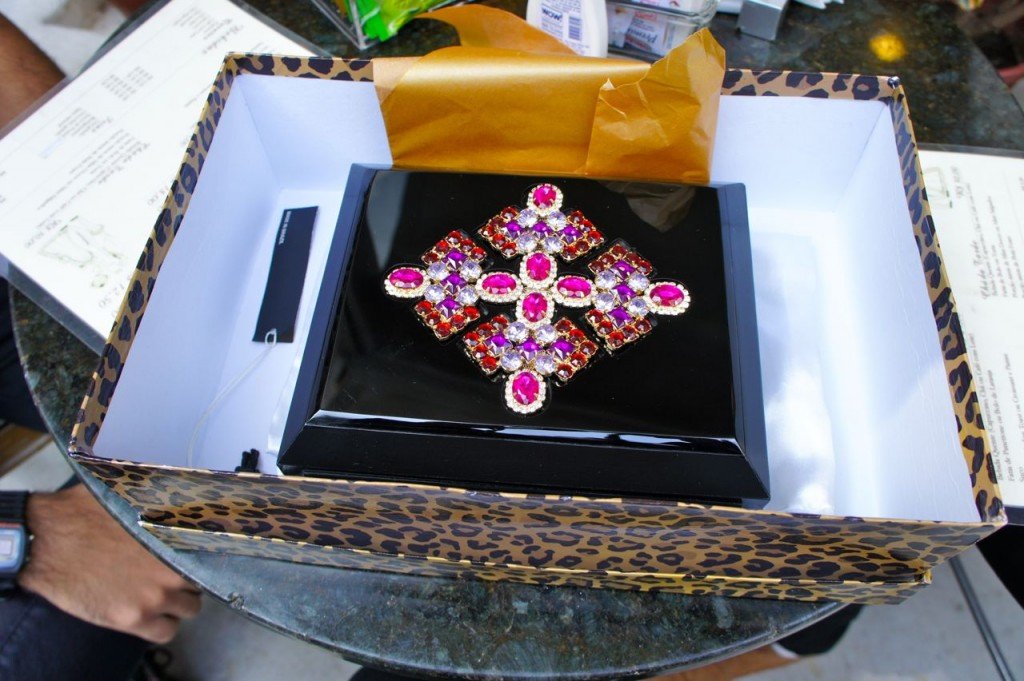 Adoro cristai para a noite (e às vezes dia também). Esta bolsa foi um presente de Alexandre Pavão. Braceletes de Raphael Falci, Provence e H.Stern.
