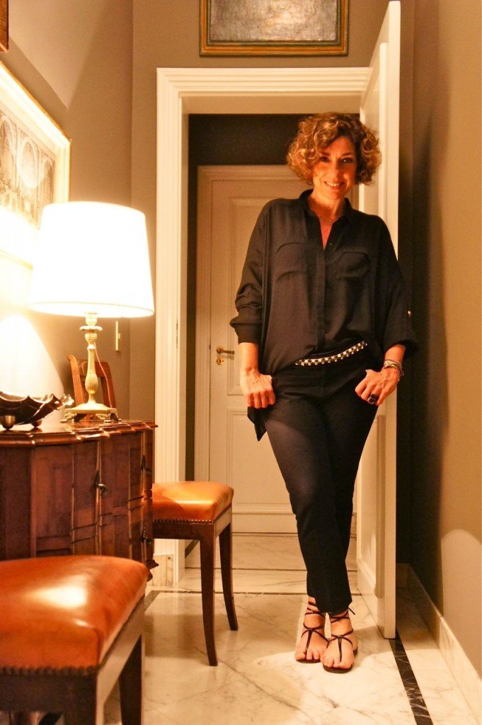 Vocês já viram este meu look no post de ontém. Esta seria a minha versão de rock ‘n’ roll… A jaqueta de couro marrom escura é da Topshop, a t-shirt é da Boy que comprei em Roma na Nuyorica (mostrei neste post AQUI) sapatilha Repetto de feltro e calça Banana Republic. Os colares são da Camilla Raggi (vejam ela neste post AQUI) e Ca&Lou (post AQUI).