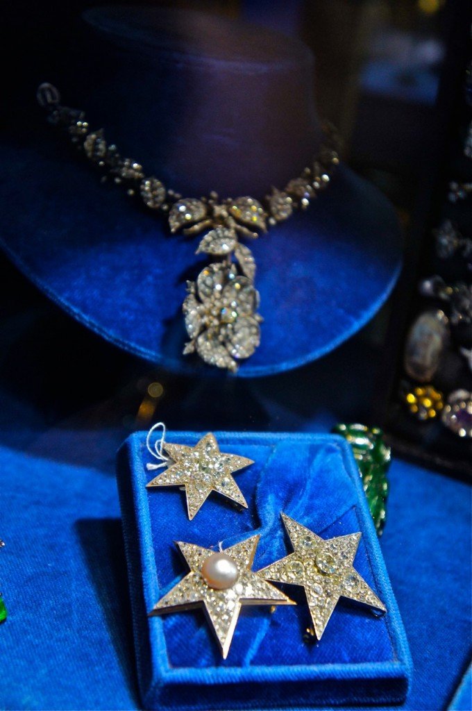 Além de jóias antigas que ela garimpa pelo mundo a fora, ela desenha jóias maravilhosamente ousadas e grandes com caveiras e pedras semipreciosas que traz do oriente.