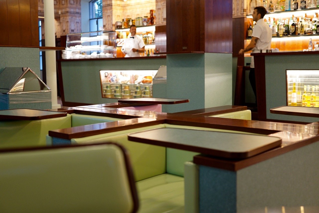 Ao interno tem um café bar decorado pelo diretor de cinema Wes Anderson. Sim o do Grand Budapest Hotel!