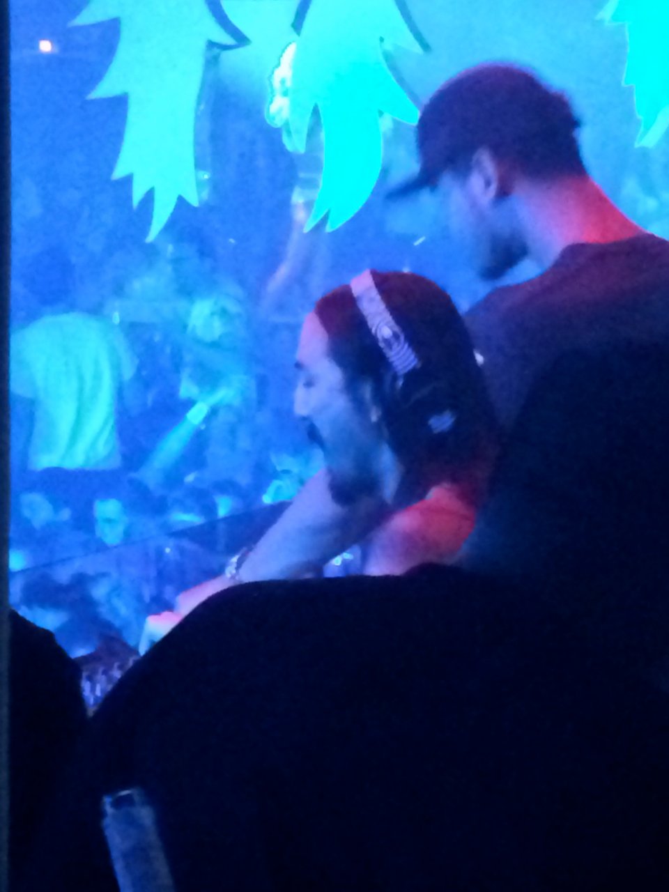 Aprendi algo há um tempo, em situações apertadas, escolha de ficar rente à parede. Fazendo assim acabamos atrás do meio vidro da zona VIP do palco assistindo aos dois DJ’s meio de costas mas vendo todos os bastidores. E ao mesmo tempo estávamos perto da saída! Pefeito!!