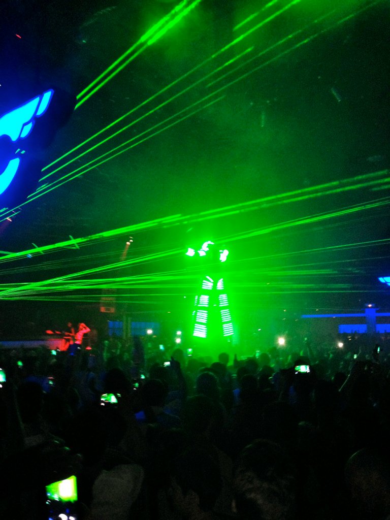 Cada pouco jogam jatos enormes de fumaça de gelo seco que refrescam o ar, dão adrenalina e ajudam a criar a atmosfera para o incrivelmente fantástico jogo de luzes.