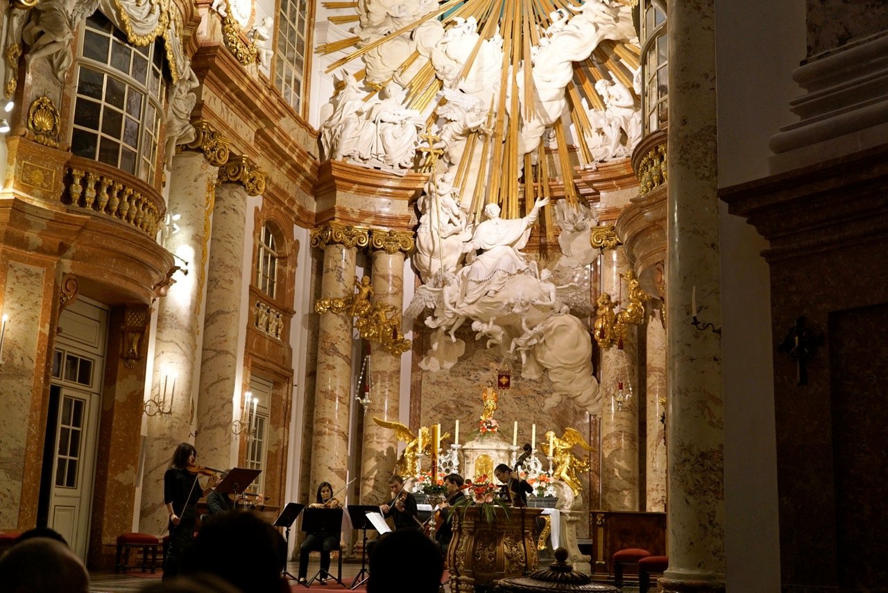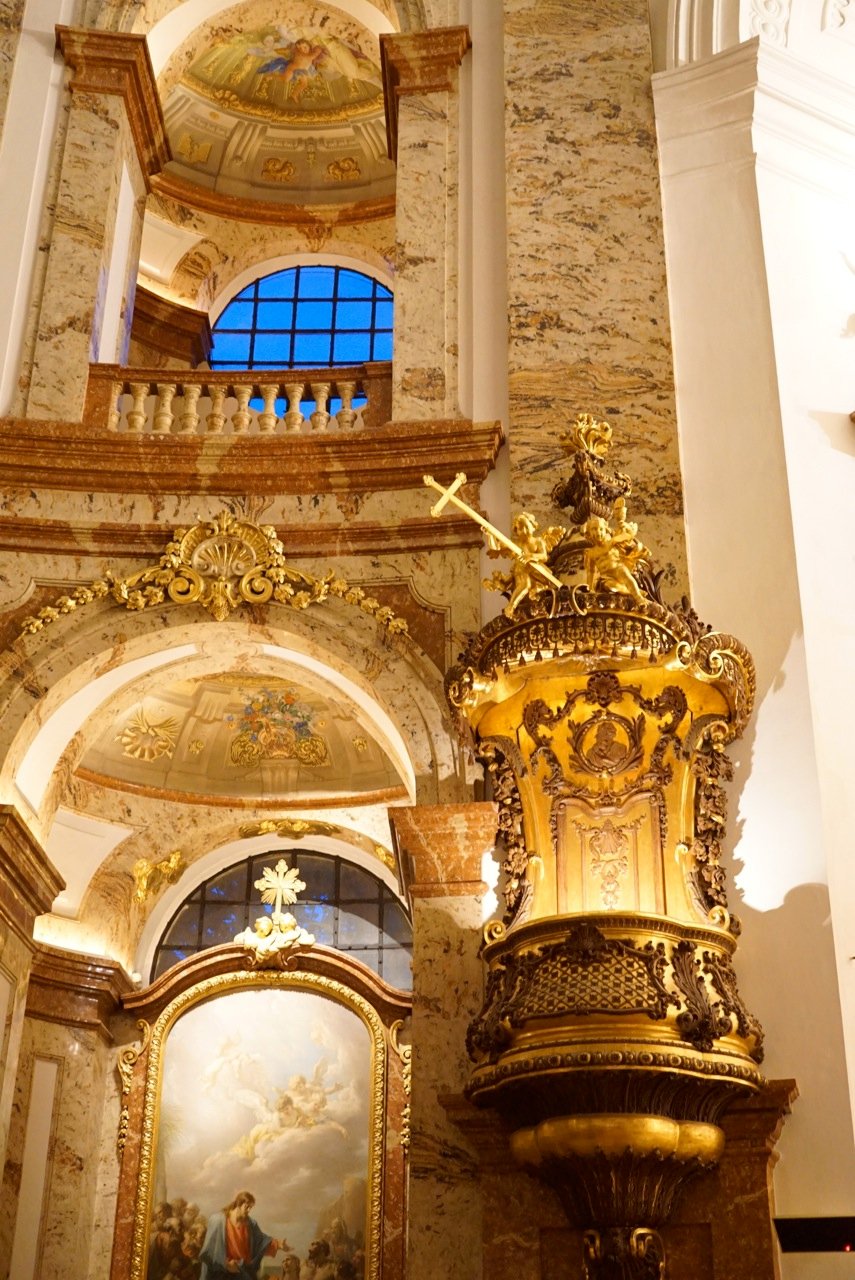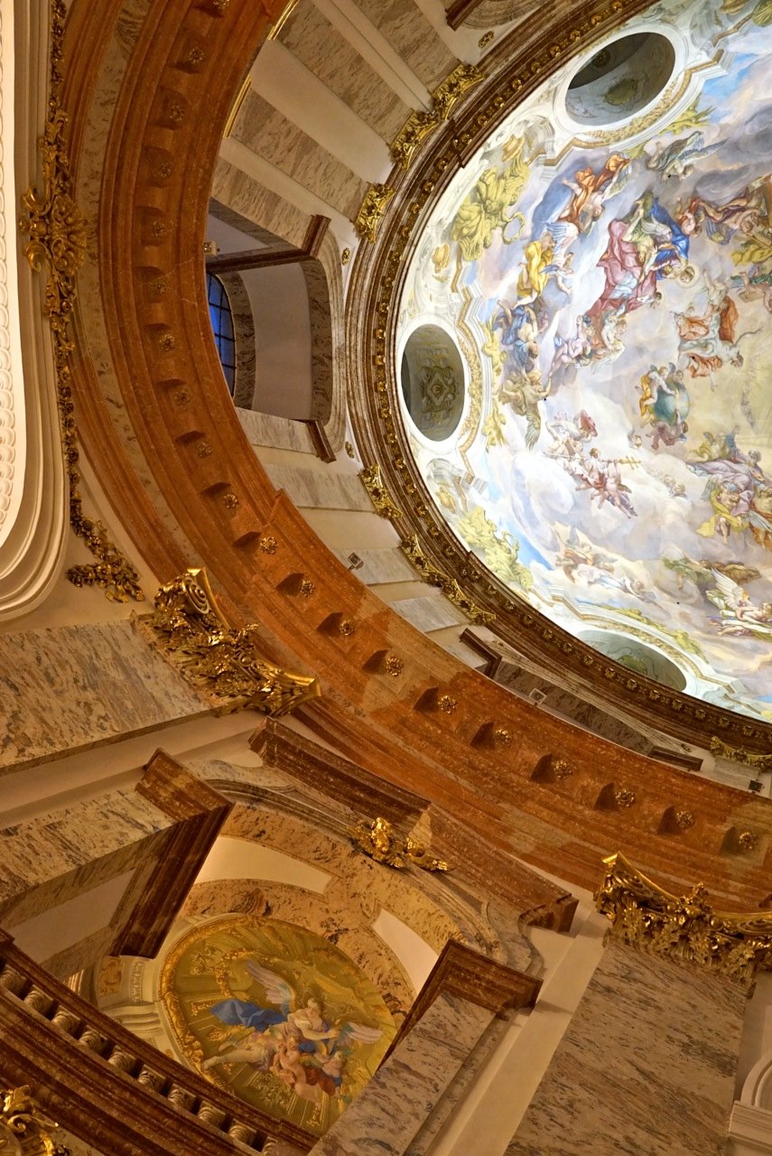 Ah! estou adorando este passeio por Viena...: o altar da Karlskirche é barroco puro! Majestoso! ; os afrescos da abóboda mereceriam uma análise detalhada da Lu e o edifício da Secessão demonstra a nova arte de uma geração de vanguarda que surgia para contestar. Na prática, foi a resposta vienense ao art nouveau francês. Tudo lindo!