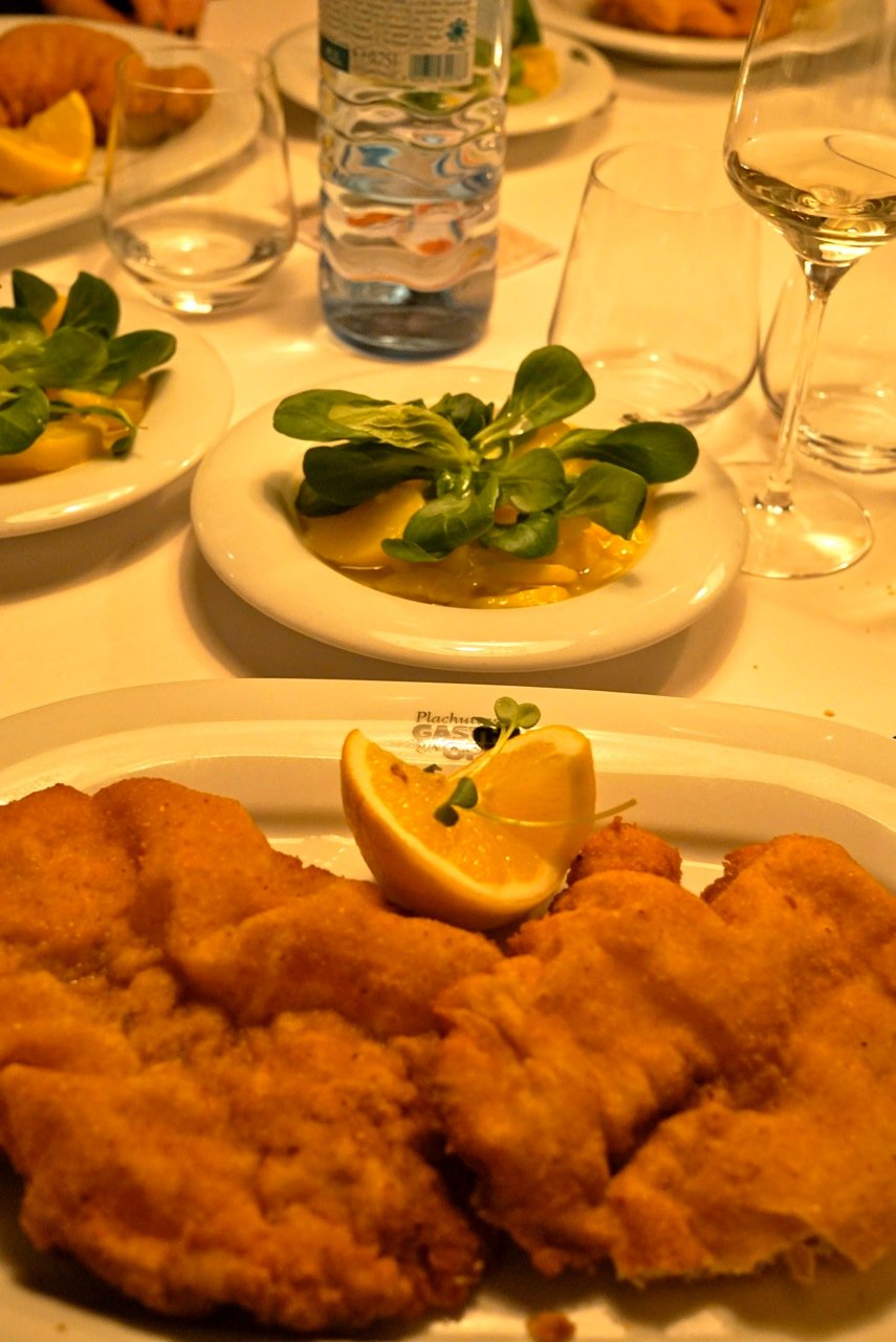 O cardápio do jantar, uma delícia.... esse mega schnitzel merece ser degustado. Na realidade, tem muito a ver com bife à milanesa que vocês bem conhecem de Milão . Não à toa foi a opção degli italiani.