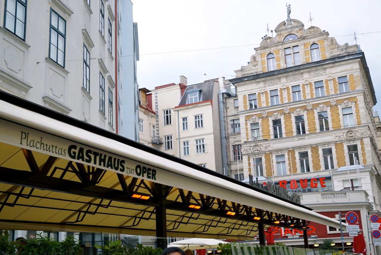 E depois fomos jantar no ultra tradicional Plachuttas. Nós fomos nesta sede que é a Gasthaus zur Oper. Nosso apartamento é o terraço do último andar deste prédio moderno que se vê aqui. Walfischgasse 5-7. Tel +43 1 5122251