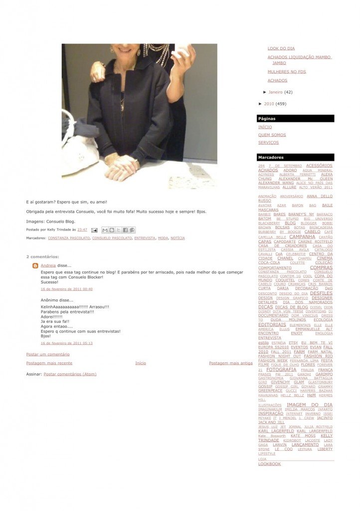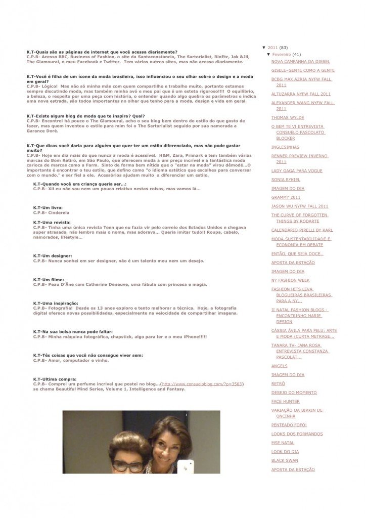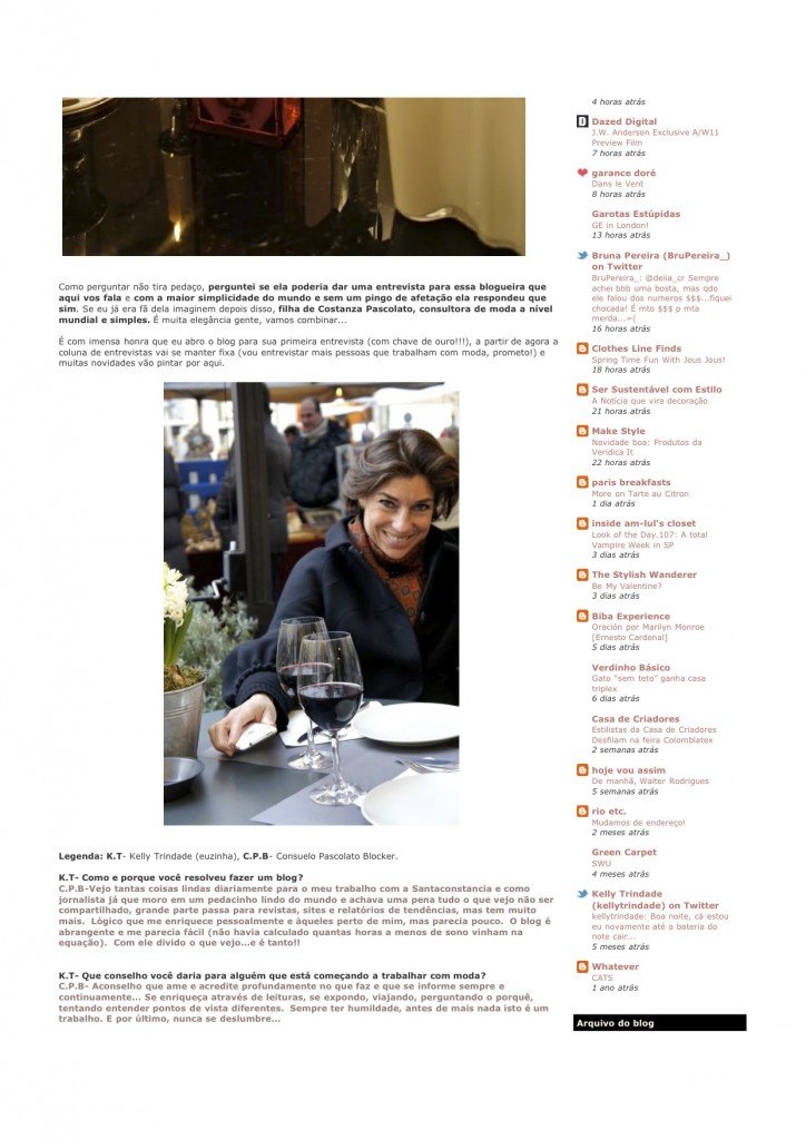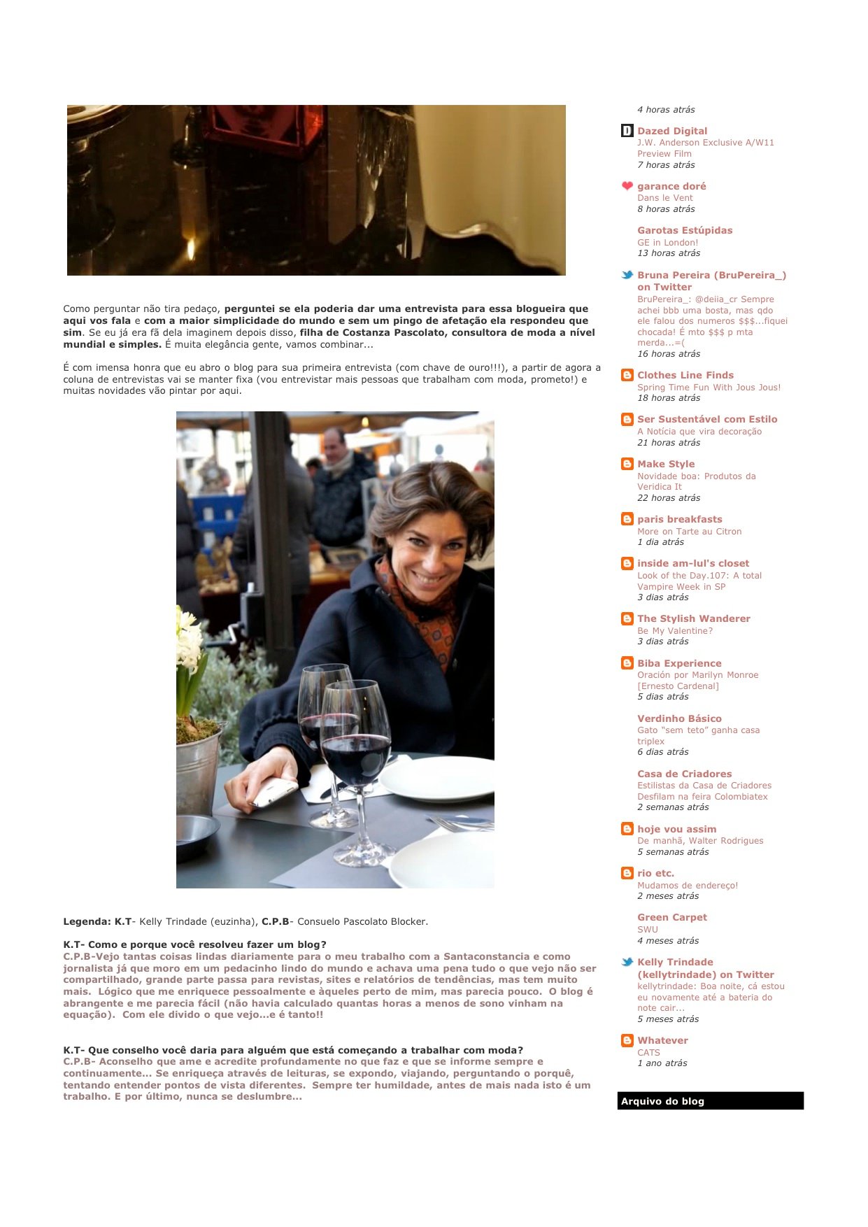 19 de February de 2011Fiquei sabendo do seu blog através do Glamurama que acesso diariamente. Também vejo todo dia o Conexão Paris e The Sartorialist. Vou passar a ver o seu blog também, pois são momentos nos quais "viajo" através da visão dos outros. Parabéns! Já era fã de sua mãe e agora poderei ver um pouco de sua história no seu blog (você deve escutar isso todo dia!). Obrigada por compartilhar!
