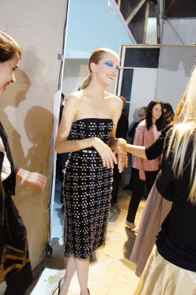 Se vocês reparam no convite de Franca, ela está indo ver Chloé. E esta é a cena após o desfile no backstage. Com as meninas já penteadas e maquiadas, muitas marcas aproveitam para fazerem algumas fotos para seu utilizo. A modelo levou a pose para o espírito leve da maison.